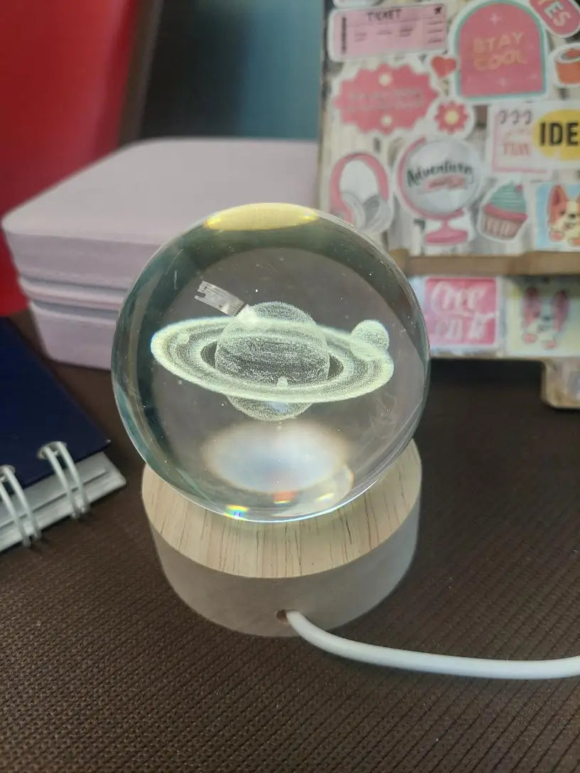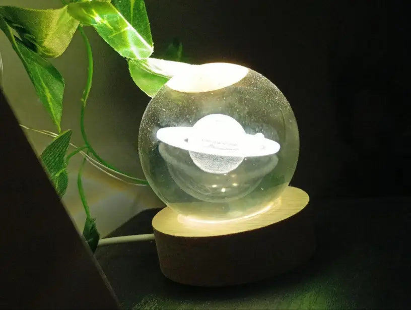 Cristal de alta calidad y base de madera que crea luces suaves y bien bonitas. Ideal para tu rincón preferido.